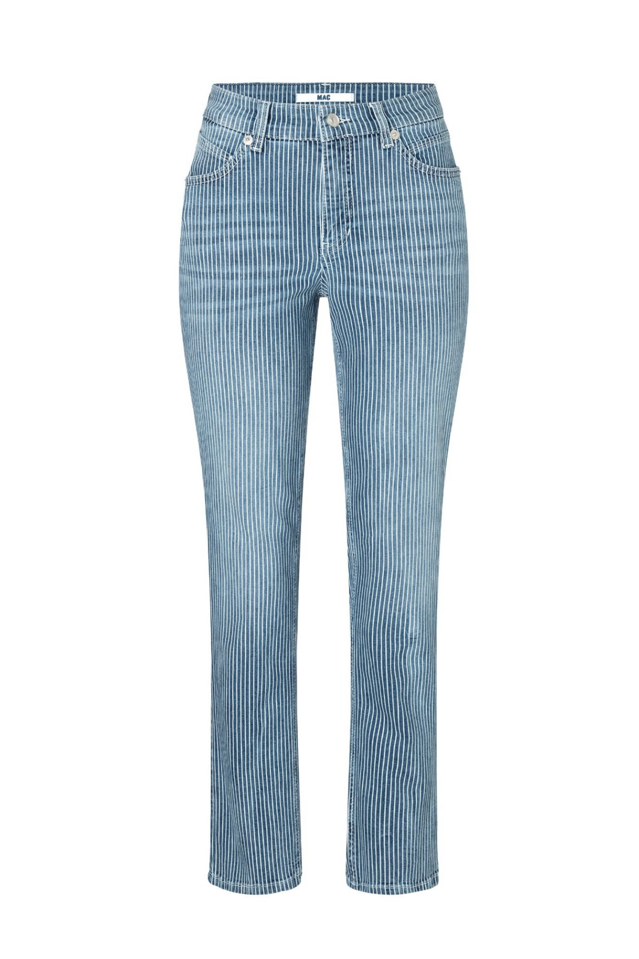 Die Melanie Jeans von MAC macht immer eine gute Figur. Hier in angesagtem sommerlichen Minimalstreifen auf der blauen Jeans. Hier in den extra langen Längen L34 Inch & L36 Inch, perfekt für grosse Frauen.