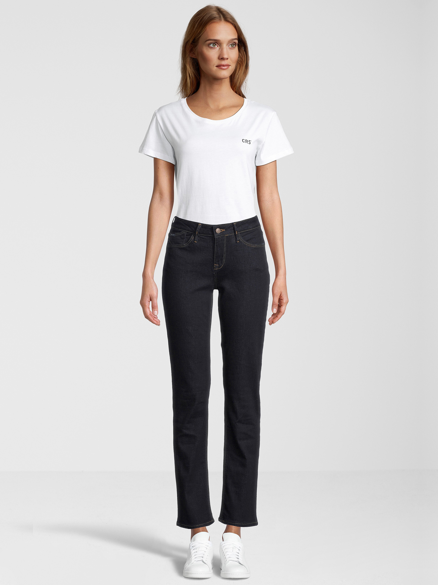 The Cross Rose jeans with straight leg impress with their classic dark blue rinsed wash. The high waist, straight leg and stretch denim hug the figure and accentuate it at the same time. The stretch denim makes these long-size jeans very comfortable to wear. The Rose is available here in the extra length L36 inch inside leg length and is therefore perfect for tall women with long legs.