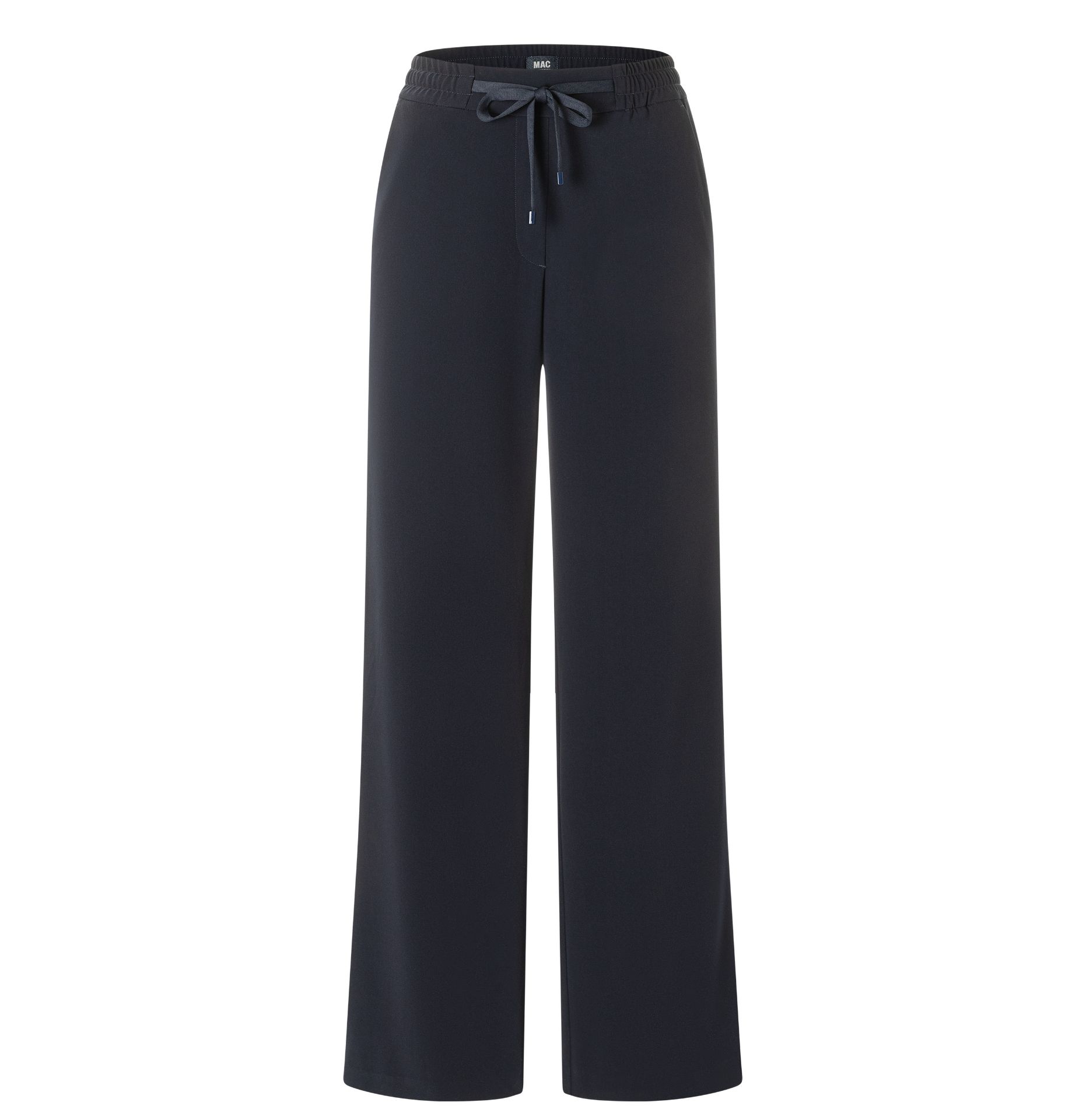Straight-cut trousers in a 36-inch length are ideal for tall women. The elasticated waistband with logo detail ensures a comfortable fit, while subtle pleats and contrasting piping at the sides create an elegant look. Flap pockets at the back complete the stylish design